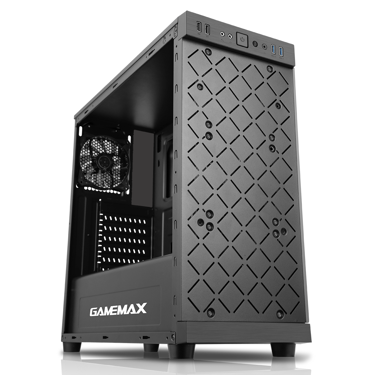 GameMax Polaris Black Mid-Tower RGB Gaming Case 4 x 12cm RGB Fans Tempered Glass Side & Front Panels