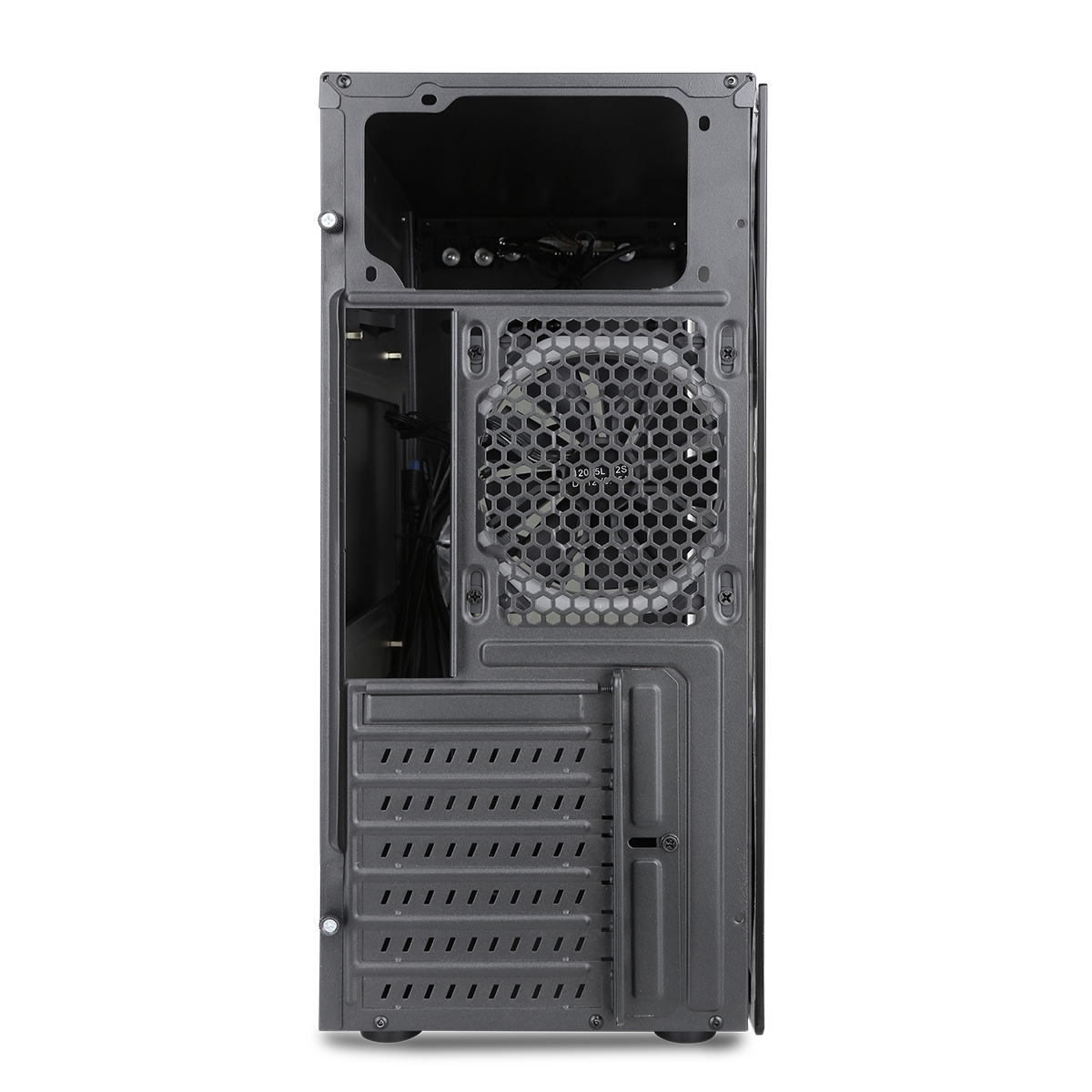 CiT Voyager Black MATX Tempered Glass Case 1 x 12cm Blue LED Fan at Rear
