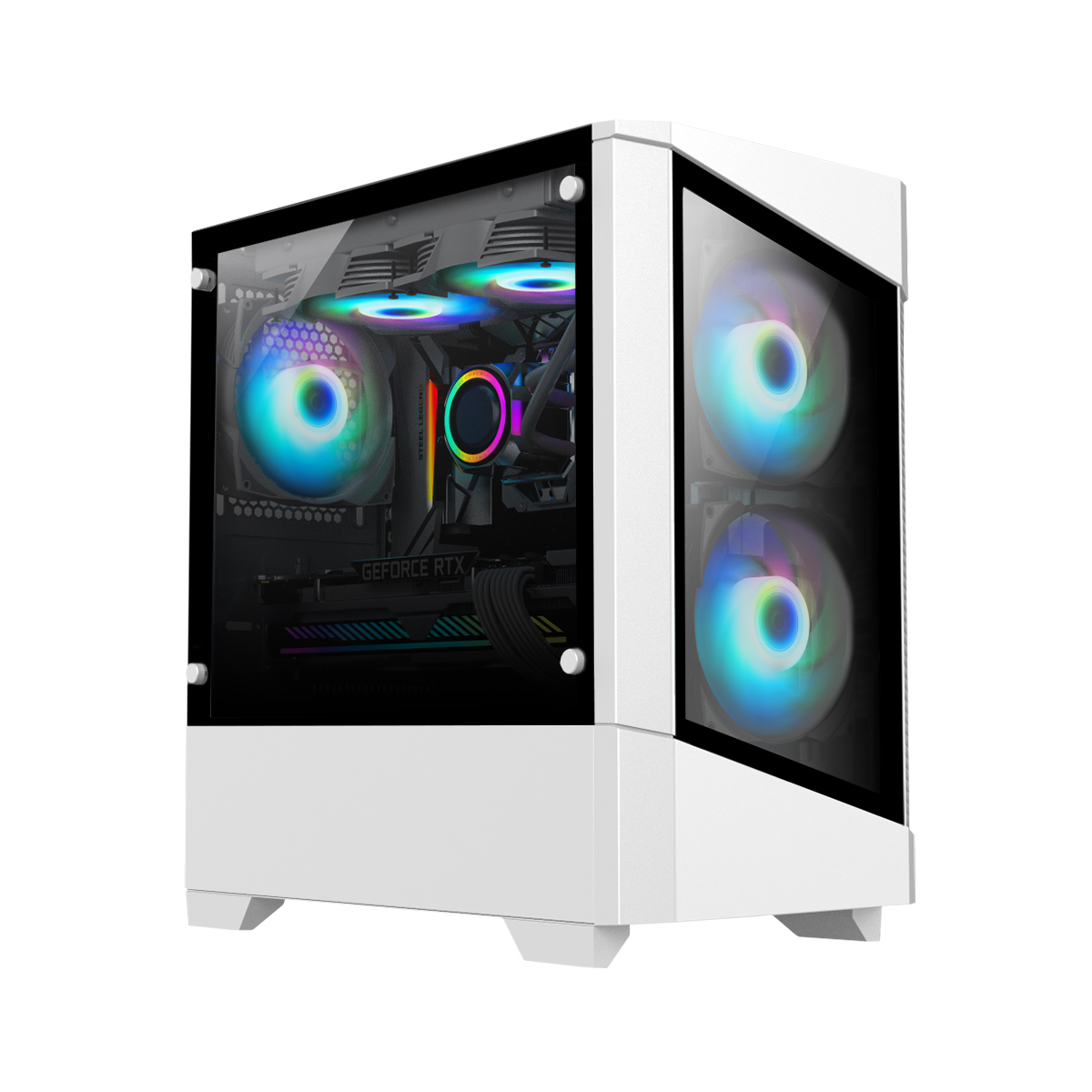 CiT Level 1 White Micro-ATX PC Gaming Case with 3 x 120mm RGB Rainbow Fans Included With 30 Percent Tempered Glass Panels