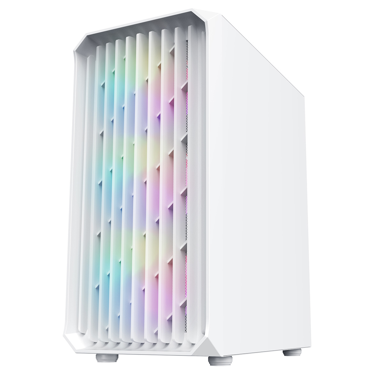 CiT Saturn White Micro-ATX PC Gaming Case with 4 x 120mm Infinity ARGB Fans Included 1 x 4-Port Fan Hub Tempered Glass Side Panel