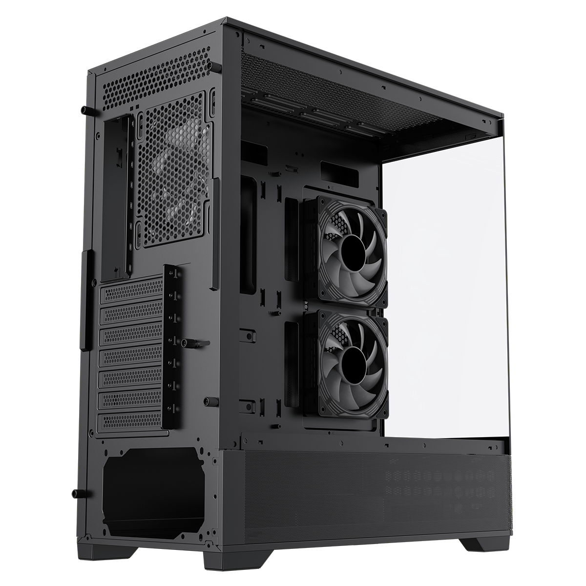 GameMax Vista Black ATX Gaming Case with Tempered Glass Front and Side Panels with 3 x FN12A-C8I 120mm Infinity Fans Installed