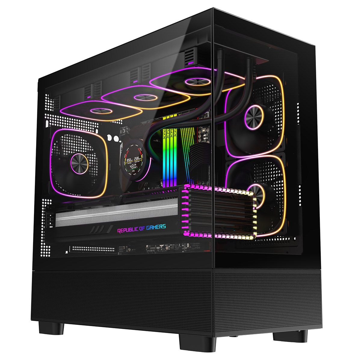 CiT Solar Black Micro-ATX Gaming Case With Two-Sided Tempered Glass and 3 x 120mm PWM ARGB Fans With 6-Port Hub Included