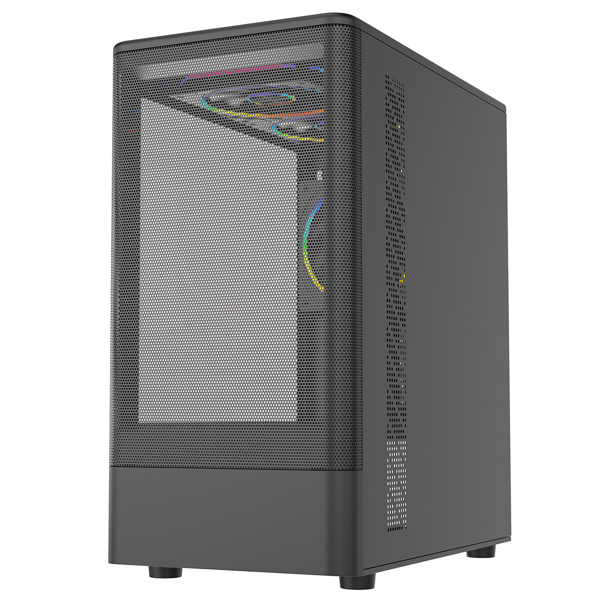 CiT F3 Black Micro-ATX Mesh PC Gaming Case with 3 x 120mm ARGB Fans Included With Tempered Glass Side Panel